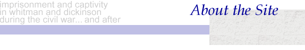 ![]() Imprisonment and Captivity in Whitman and Dickinson During the Civil War... and After is a web teaching component of The Classroom Electric: Dickinson, Whitman and American Culture project sponsored by FIPSE. Kirsten Silva Gruesz is its author, and Thomas Hill is the research assistant. Server space was generously provided initially by the Humanities Division, University of California, Santa Cruz, and currently by the Institute for Advanced Technology in the Humanities at the University of Virginia. The site was designed by Kirsten Gruesz and Lara Vetter, and is maintained by Lara Vetter. Caveats: This is an experimental site under occasional construction. Images and text are used as set forth in the Fair Use Act; when necessary, copyright permissions are being secured. Illustrations, unless otherwise credited, are from the Harper's Weekly coverage of the Wirz trial in the September 15, 1865 issue. Please email me at ksgruesz@cats.ucsc.edu with comments. Kirsten Silva GrueszDept. of Literature, University of California, Santa Cruz ![]() |